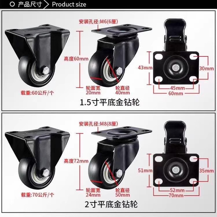 | Đặc điểm riêng | Càng thép và bánh xe PVC rất dày và đẹp. Đây là dòng bánh xe có tải trọng vừa phải mà Chenggong đang cung cấp, phù hợp với nhu cầu dân dụng. |