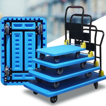 Xe Đẩy Hàng 4 Bánh 300kg sàn bằng nhựa cao cấp với thiết kế nhỏ gọn, dễ dàng gấp gọn và cất dưới gầm bàn, gầm ghế hay cho dựa vào tường mà không sợ tốn diện tích. Xe được thiết kế sàn nhựa cao cấp nâng cao độ bền, độ chắc chắn tuyệt đối với trọng tải lên tới 300kg.
